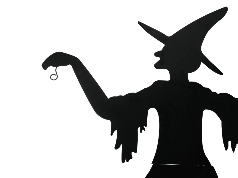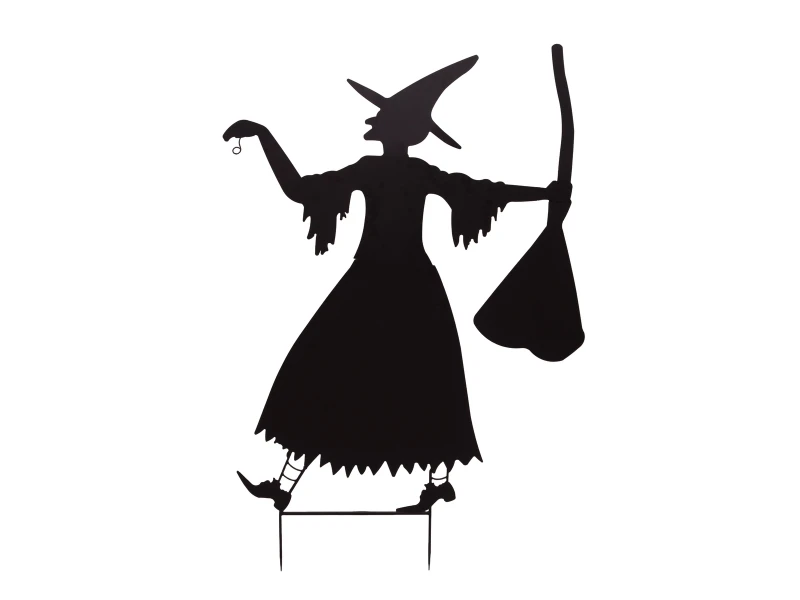 Heks gemaakt van metaal met hoed en bezem